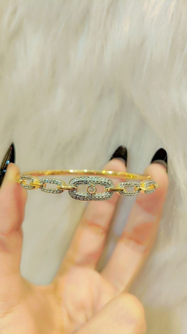 & Free Shippingاسوارة لالماس مطلية بطبقة من الذهب مرصعة بفصوص صغيرة وفي منتصف سوار يوجد فص كبير يشبه لالماس ولمعة التي يحتويها سوار تخطف لانظار كما وانها مناسبة لجميع المناسبات سواء رسمية او غير رسمية