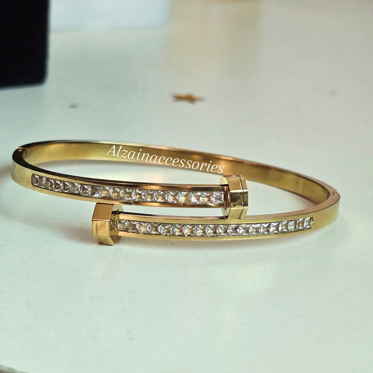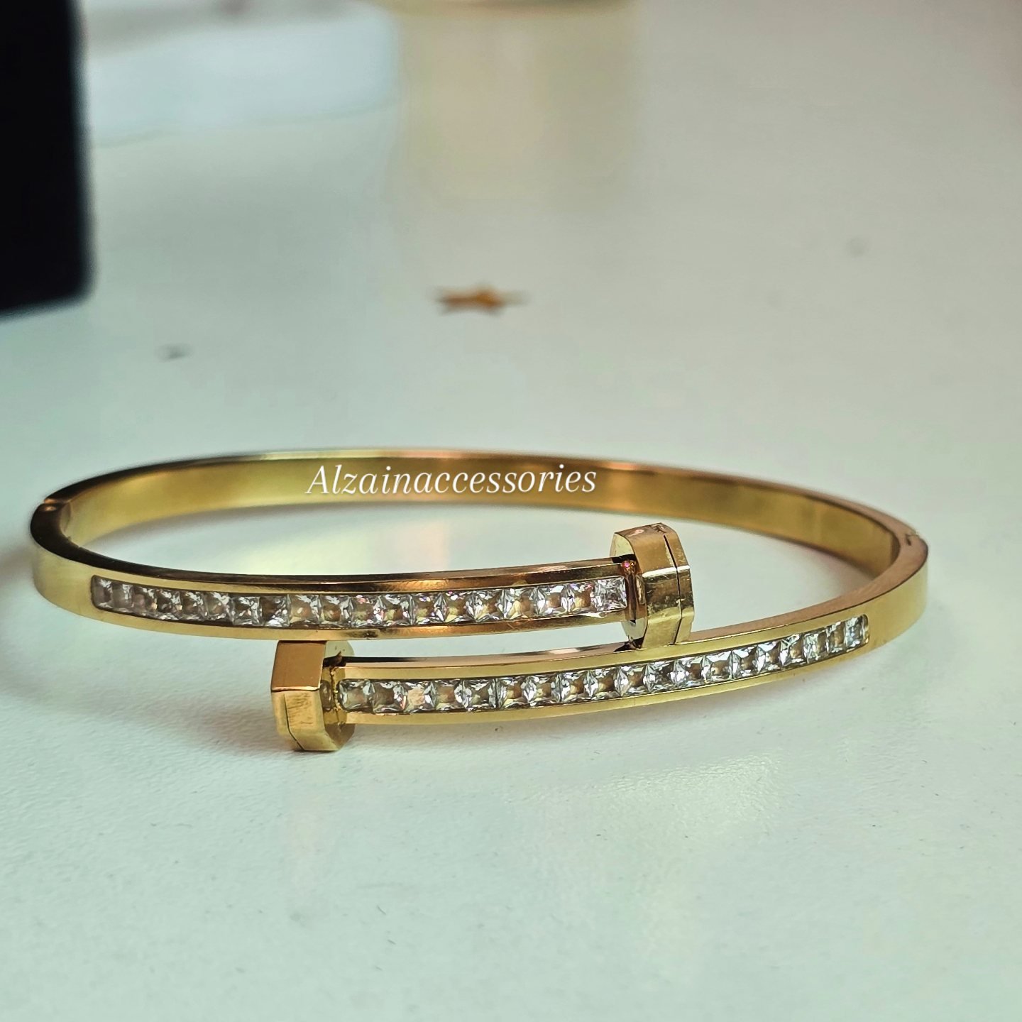 اسوارة كارتيية او المسمار مطلية بطبقة من الذهب سوار مصمم تصميم انيق وابسيط ومرصع بفصوص صغيرة ملتفة على سوار تشبه لالماس