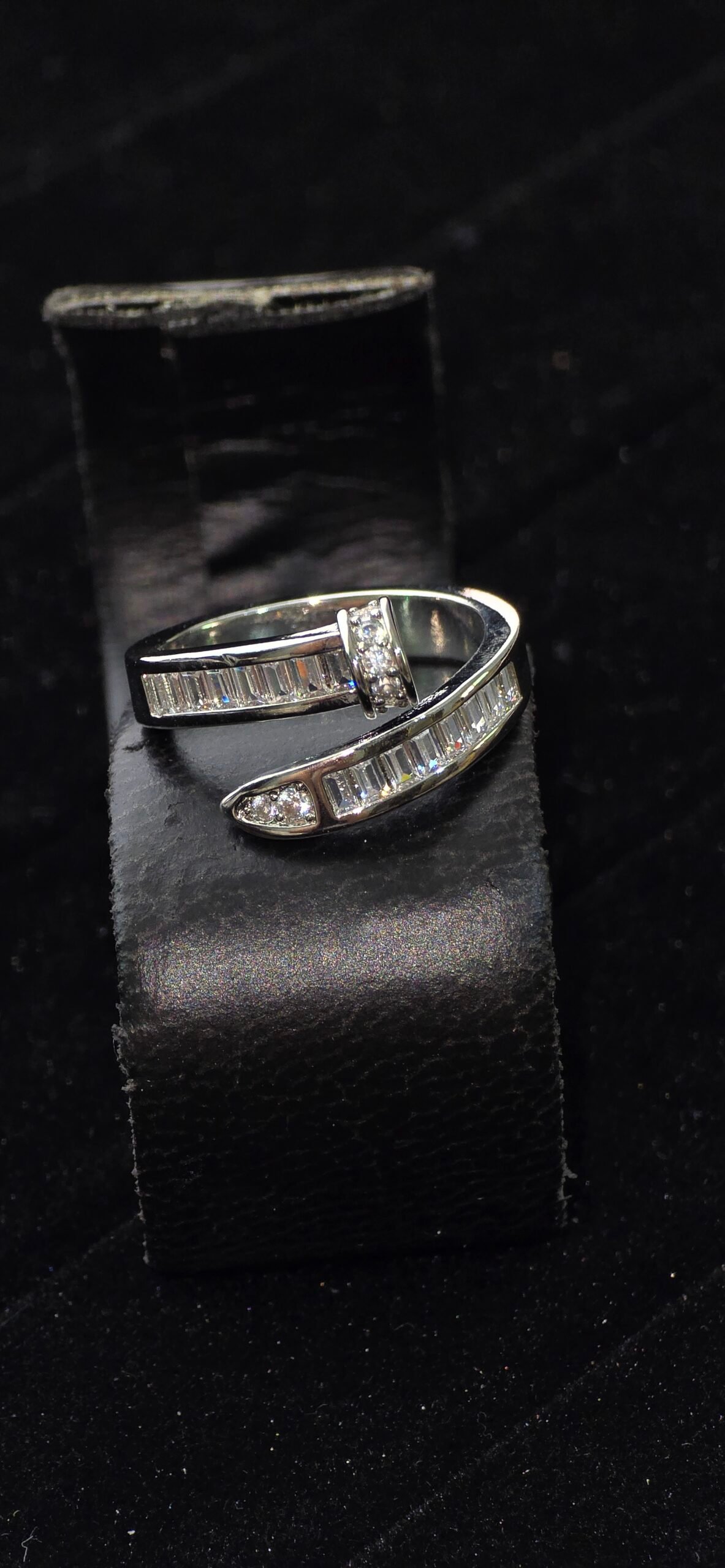خاتم مصمار الفضي الماسي مرصع بكرستال كبيرة الحجم تشبه الماس جميل وانيق ومناسب لجميع المناسبات