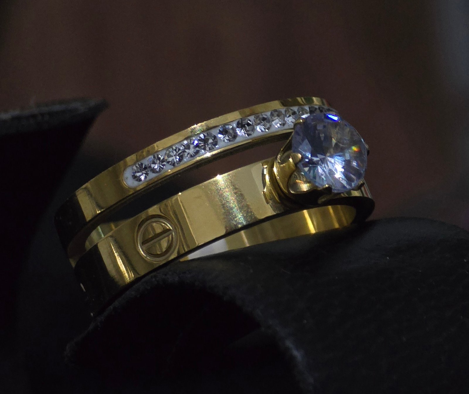 & Free Shippingمحبس كارتير تونز فيجارو مطلي بطبفة من الذهب مرصع بفصوص صغيره بالاضافة الى فص كبير يشبه لالماس وعند ارتدائها تبرز جمال معصميكي وتشير الى الرابطة لابدية بينكي وبين شريكك