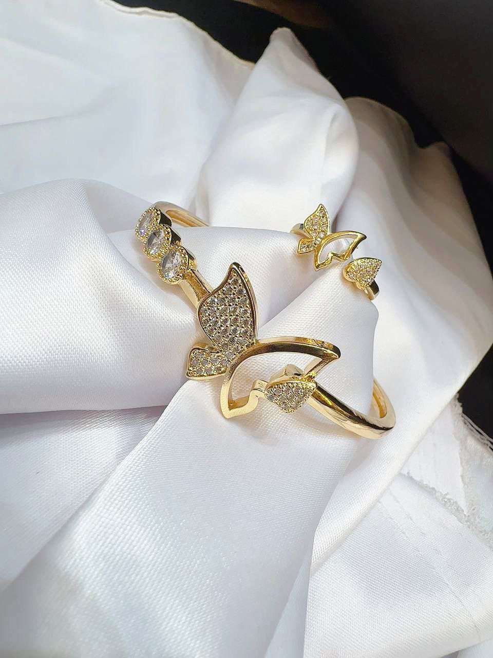 & Free Shippingطقم مجوهرات الفراشات ذهبية مطلي بطبقة من الذهب يحتوي على (خاتم / اسوارة ) ومرصع بفصوص صغيرة الحجم وعلى جوانب سوار مرصع بفصوص كبيرة تشبه لالماس ومناسبة لجميع المناسبات