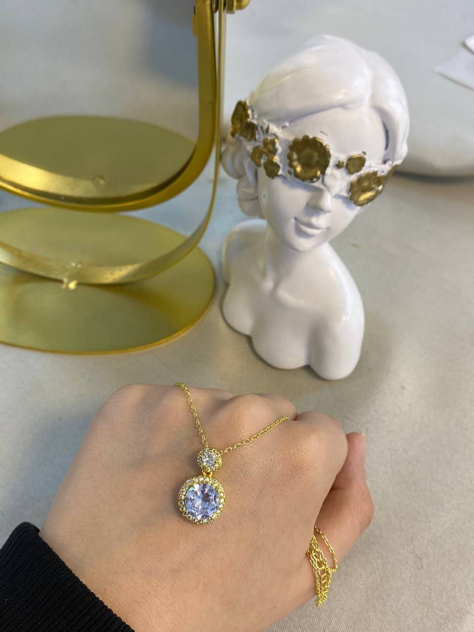 & Free Shippingالنوع: هو سلسال نسائي يتميز بوجود حجر كبير بيضاوي الشكل وحجر دائري أصغر متدليين كـ “دلاية”.